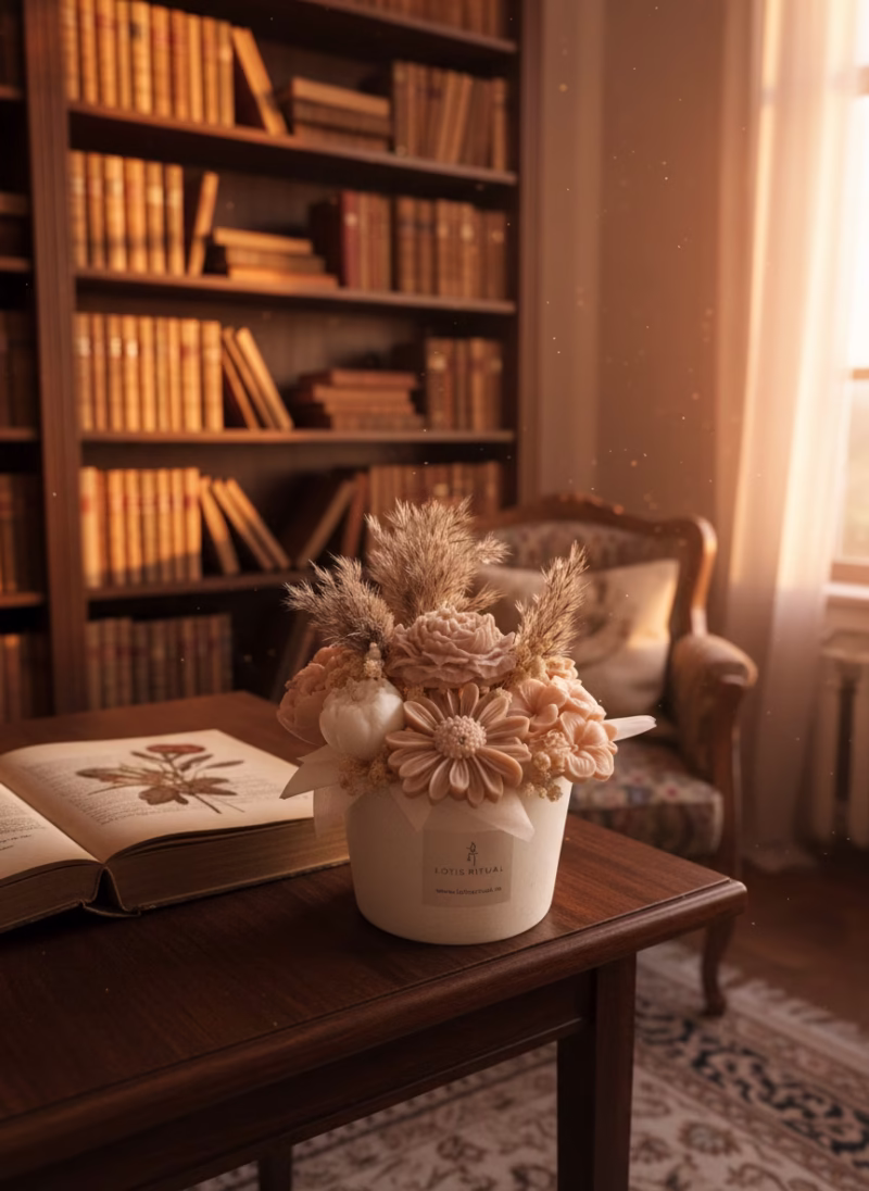 Acest aranjament floral ceară de soia pastel elegant se potrivește perfect în decoruri moderne, nordice, boho sau rustice, aducând un vibe luminos, cald și natural în orice spațiu. Culorile pastelate simbolizează puritate, începuturi noi, respect și grație discretă, iar accentele naturale creează o legătură cu natura și sezonul de toamnă. Fiecare piesă este eco-friendly și artizanală, ideală pentru cadouri sofisticate sau ritualuri personale ce aduc armonie și lumină.