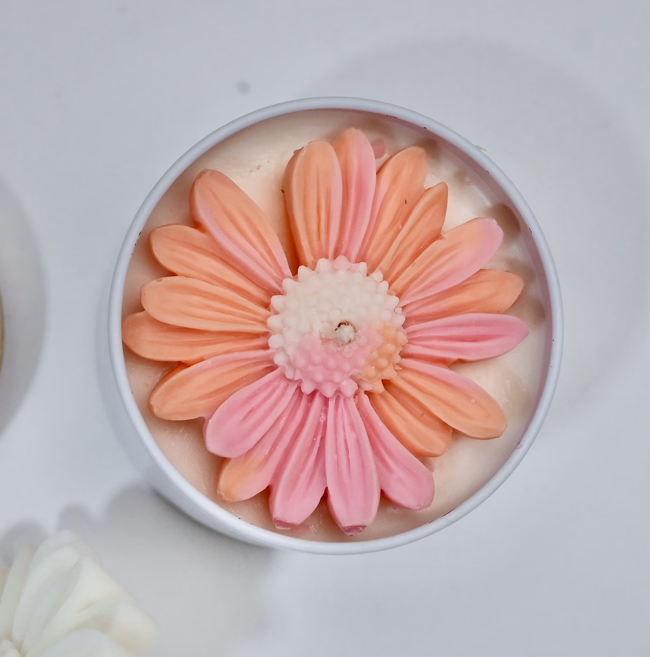 •Ceară: 88g ceară de soia certificată bio pură + 18g margaretă decor din ceară colorată artizanal
