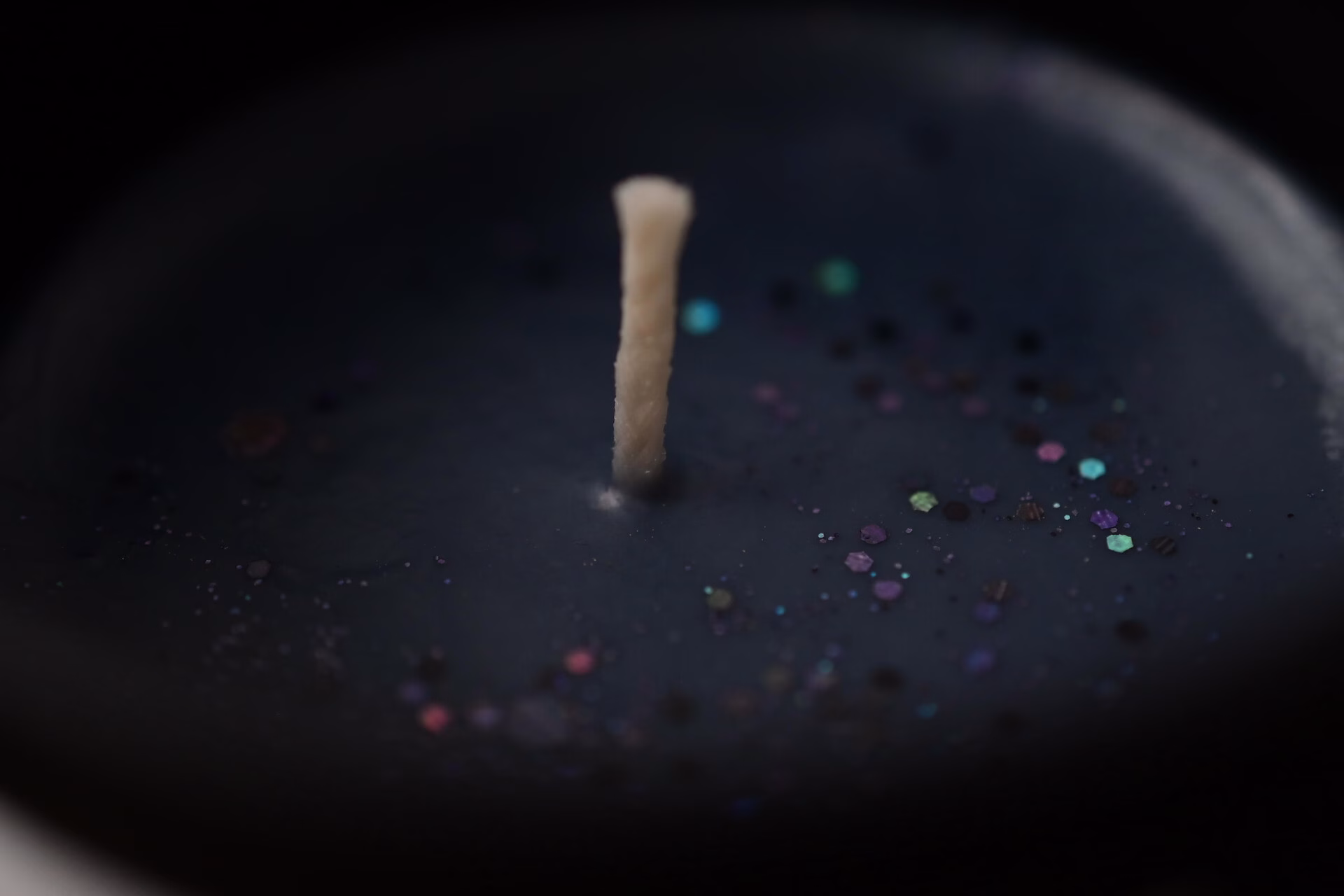 Glitterul cosmos din ceară, integrat cu pasiune în atelierul din Vrancea, evocă modernismul abstract (Wassily Kandinsky, 1920) prin particule strălucitoare ce amintesc de galaxii, reinterpretate subtil în ceară neagră profundă. Paharul negru mat devine nu doar recipient practic, ci vas decorativ iconic pentru living-uri contemporane, birouri executive sau dormitoare zen, unde captează lumina cu magneție, atrăgând privirile și stârnind conversații despre misterul universului.